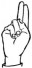 На ћирилици написано АНГЕЛИНА КРГА састоји се из 12 слова [?]. Исписано ћириличном једноручном азбуком за глувонеме: